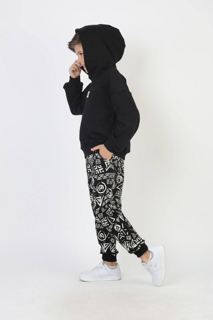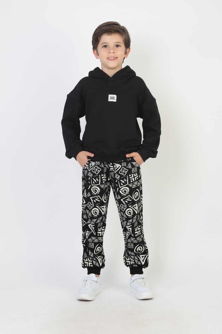 Alt Desenli Kapşonlu Erkek Takım
